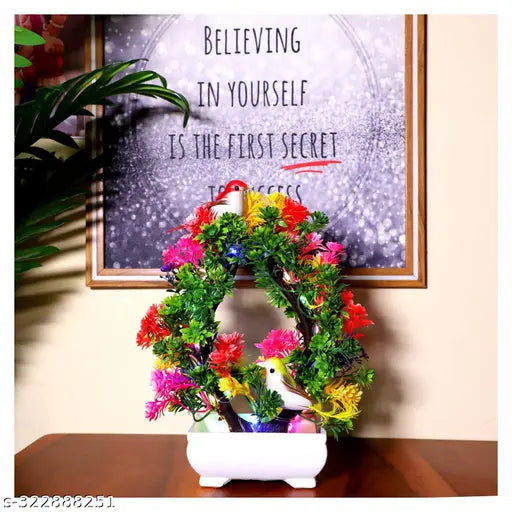 Enhance your living space with the Artificial Bonsai Green Tree featuring a charming sparrow and LED light accents. This beautifully designed artificial plant adds a touch of nature to any room, making it perfect for the living room, dining table, office, or special occasions like Diwali and other festivals.